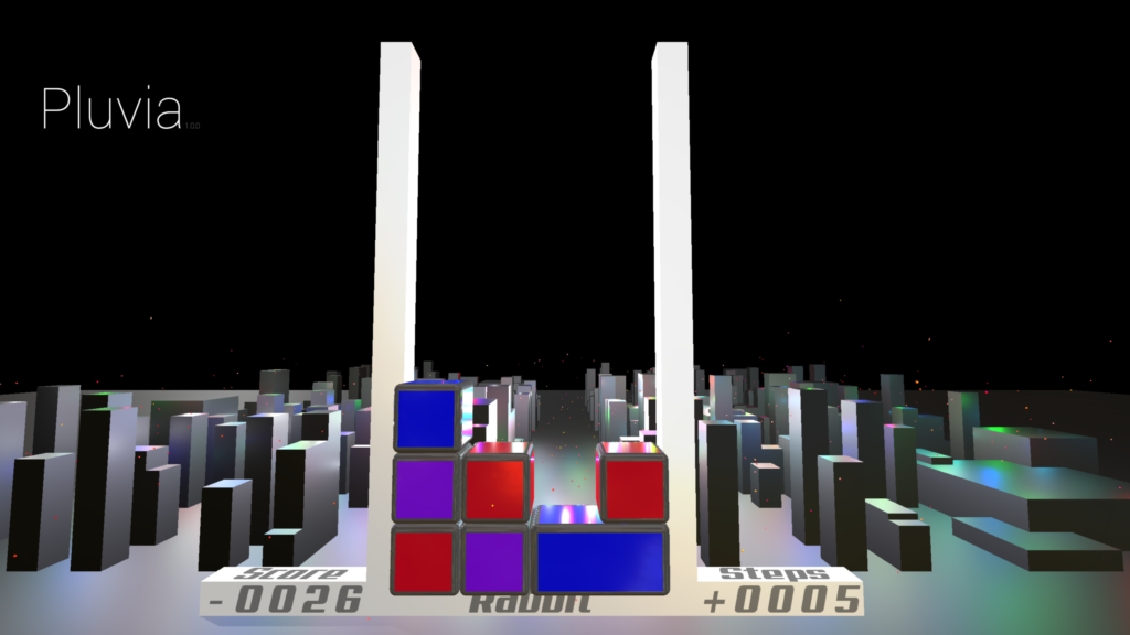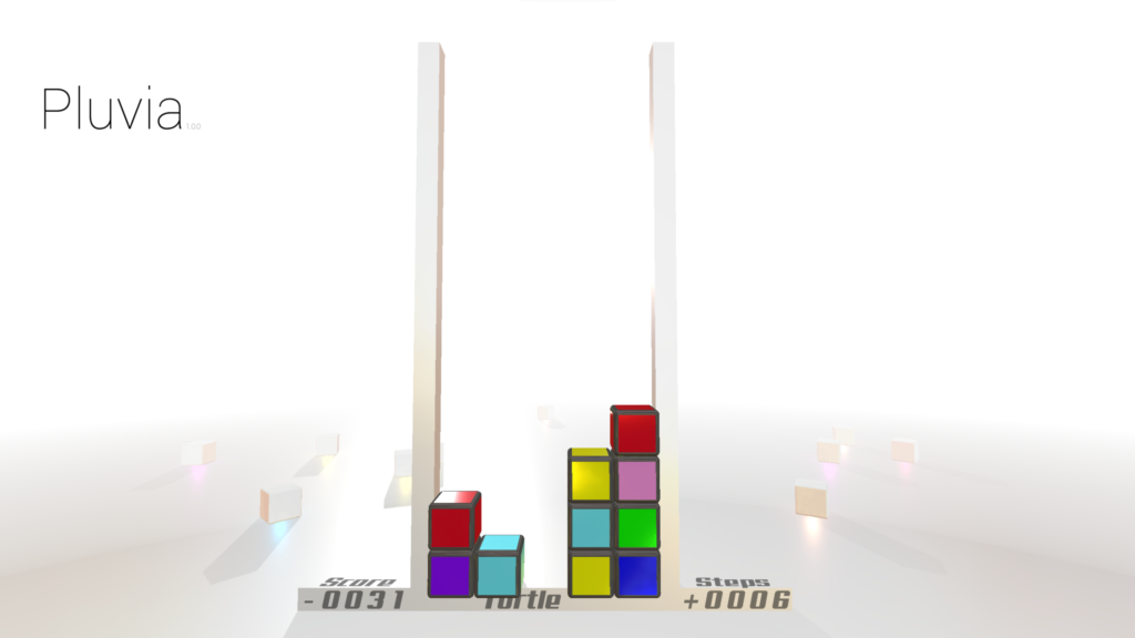 Pluvia’s main target is to gain the highest score by keeping a steady growing pile of stones from reaching the top of the screen.